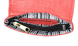 This Alexandra Satine Altimira Wallet is the ideal credit card, ID and change holder. The perfectly spunky and colorful holder can also sub in for lipsticks or business cards, and their bold colors make them easy to find in your purse. Get yours in salmon or aqua. Better yet, get both! The large pebble texture leather wallet is lined in a fun striped print, with a zippered divider in the middle and exterior snap closure.