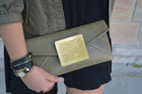 A professional woman's ideal clutch for events, fundraisers and gallery openings. You'll wonder how your closet and you ever lived without this gorgeous piece of art before! The hand-hammered, 18K gold-plated brass accent seals the deal on this glamorous fine Italian leather envelope clutch, a Dareen Hakim Collection signature style.