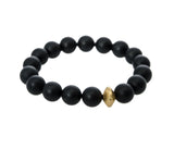 Sisco + Berluti Beaded Bracelet - Black Matte Round Beads with Gold Disc Accent