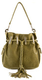 It's a cinch to adore this bag! From the textured leather to the detail of the braided tassels and the metal accents of the drawstring loops this bag will draw you in. The open and spacious bag will carry all of your necessities for work, play or everyday. Plus there is an interior zippered pocket and two exterior pockets with magnetic flaps to keep your most needed items within easy reach. You may just want one in every color to go with all of your outfits.