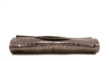 NOTE: Blue clutch has minor fading, and pulling at stitching. Slate Gray has slight creasing, and tan python embossed has wear to raised leather. Priced accordingly.