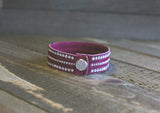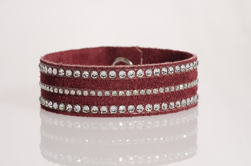 This deep burgundy bracelet is the perfect jewel to add to your fall wardrobe. Pair it with neutrals or other jewel tones for a beautiful shine. This handcrafted bracelet is designed and handmade in the heart of Montana and the gateway to Yellowstone National Park. Each piece is crafted with genuine Swarovski Crystals.