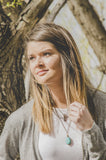 This beautiful copper necklace featuring a turquoise gemstone and other rustic details is a great way to achieve a layered look. Paired with a cardigan, or layered with another necklace this accessory creates a classic look for any occasion or season.
