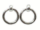 Try this simple and clean look if you wish to invoke an effortless style that goes with anything. These antique silver textured hoops pair beautifully with velvets and silks. Have fun sprucing up your favorite combinations with their upscale design. From metal molding designer Karine Sultan. Available via Handbag Tailor!