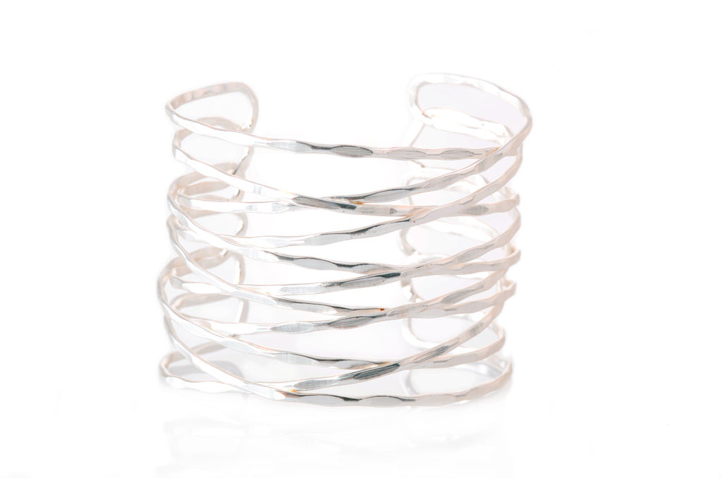 Karine Sultan Textured Overlapping Thin Bars Cuff - Silver