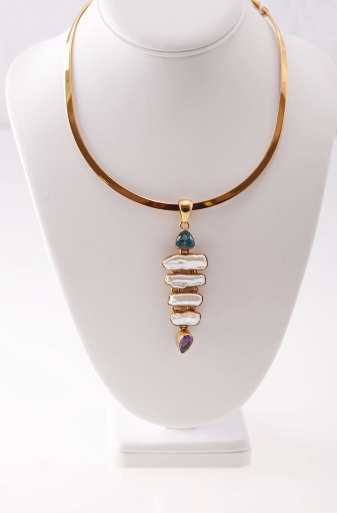 Alchemia Blue Topaz, Biwa Pearl & Amethyst Pendant