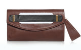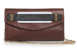 This Alexandra Satine Toledo handbag is stylish and perfect for a night out on the town! As is typical of the Alexandra Satine collection, this beautiful clutch comes with a detachable wrist strap, and a metal chain to use as a crossbody as well. We love options! A silver chain with the Grey/Magenta bag and gold with the Brown/Black/White one. Quite roomy, this clutch won't limit you to only your cell phone, credit card, and ID. But...just because it's roomy with three interior slip pockets, doesn't mean it is big and bulky. Quite the contrary. Actually it is "just right" and the real leather feels great in your hands! Plus, it allows you room to throw in a few additional essentials like makeup, tissues, a passport or keys. This is definitely one of those can't live without handbags to round out your wardrobe, and you can purchase it now at Handbag Tailor!