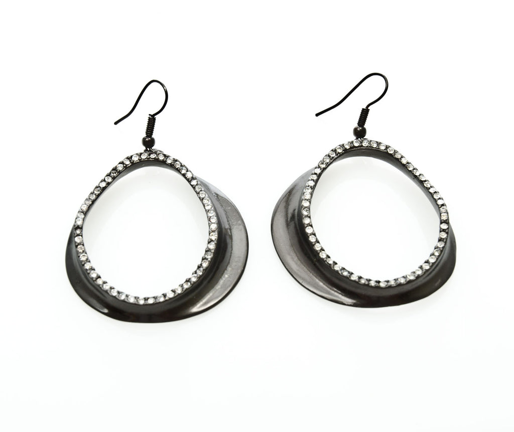 Karine's unique earrings were hand-crafted to mimic the heavenly appeal of Saturn’s rings. Then she dusted them with small stars of clear cut crystal to complete their out-of-this-world fabulous look. Wearing them will be one giant step for woman-kind. With rhinestone accents around the inner loop, these earrings are dying to adorn your ears, shining with you along the way. Brought to you from designer Karine Sultan and offered to you directly from us here at Handbag Tailor!