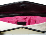 Always innovating and finding new ways to bring life to everyday items, we have the Le Bilbao Envelope Clutch from none other than Dareen Hakim. The gorgeous gold hardware with black accents make this the perfect statement clutch. The vibrancy is within. Once opened, a delightful hot pink adorns the inside. Find this one right here at Handbag Tailor!