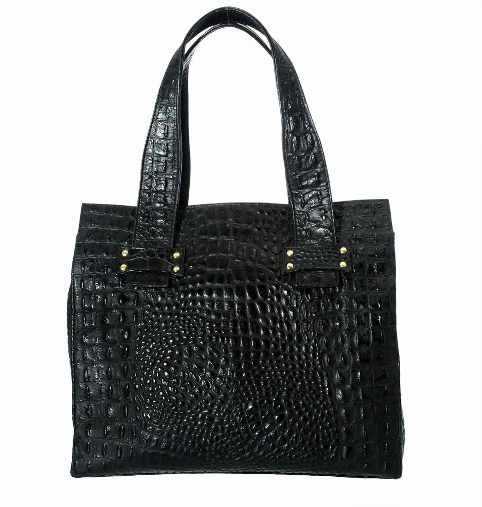 - Made of sturdy textured Italian leather in Black or Brown Faux Alligator Textured Leather