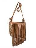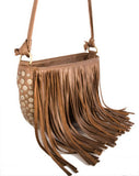This bronze fringe cross body is the perfect bohemian-style bag! Both fun and classy, you can spice up a simple outfit or add a touch of fringe to a fun one. Accented with bronze rivets on the sides, a zipped compartment, and two smaller pockets, this bag will hold everything you need while still remaining small enough to leave you free to strut your stuff.