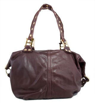 This medium-sized cross body can easily be worn on your arm or slung over your shoulder with its eye-catching removable shoulder strap. The soft and rich chocolate leather contrasts beautifully with the gold studs and Hammitt "H's" that adorn it.