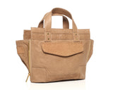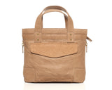 This Alexandra Satine Mini South Beach bag is the perfect sized bag...not too big, and not too small. In addition to its practicality with its multitude of both inner and outer pockets, this buttery soft leather bag features lots of fun details like zig zag trim accenting the thick leather band running across the top,snake skin texturing on the front flap, gold hardware for small pops of glam, plus a fun two-tone brown shoulder strap. It's sure to get you noticed wherever you are. Small tote with top zipper, inside pockets and side zippers.