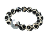 An eye catching piece of jewelry to add to your collection, this beaded bracelet was made with the intention to dazzle. From the silver globe accent to the black and white spotted beads, this is one item everyone will be gushing over. Wear stacked with other bracelets or as a standalone piece.
