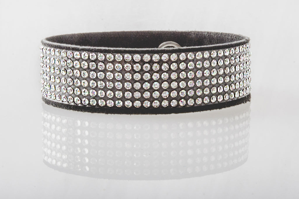 • Black Cuff Snap Bracelets with genuine black leather suede and Genuine Swarovski crystals clear