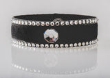 Though many HT Leather Goods pieces are designed with small Swarovksi crystals, this bracelet has a beautiful and eye-catching accent crystal that is sure to catch anyone's eye. Set against black leather, this bracelet is both elegant and statement-making.This handcrafted piece is designed and handmade in the heart of Montana and the gateway to Yellowstone National Park. Each HT Leather Goods piece is crafted with genuine Swarovski Crystals.