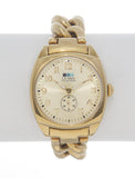 Inspired by the luxury of the Mediterranean town Monaco, La Mer Collections has captured the European city’s sparkling blue sea into its newly released Monaco Watch. Featuring a Gold Sunray finished dial, vintage-inspired separate second hand and a chic linked band that doubles as a bracelet, this new collection from La Mer Collections takes its signature timepiece design into a new aesthetic. Details include: 14K IP Gold Plated Bracelet and Case, Pumpkin scalloped Crown, Japanese Movement, Bubble Mineral Glass Crystal, stainless steel case back and folding clasp closure.